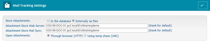 In the database – with this option, email attachments are held in the Gold-Vision SQL database. Depending on the volume of emails tracked, this can lead to the SQL database growing very large.
