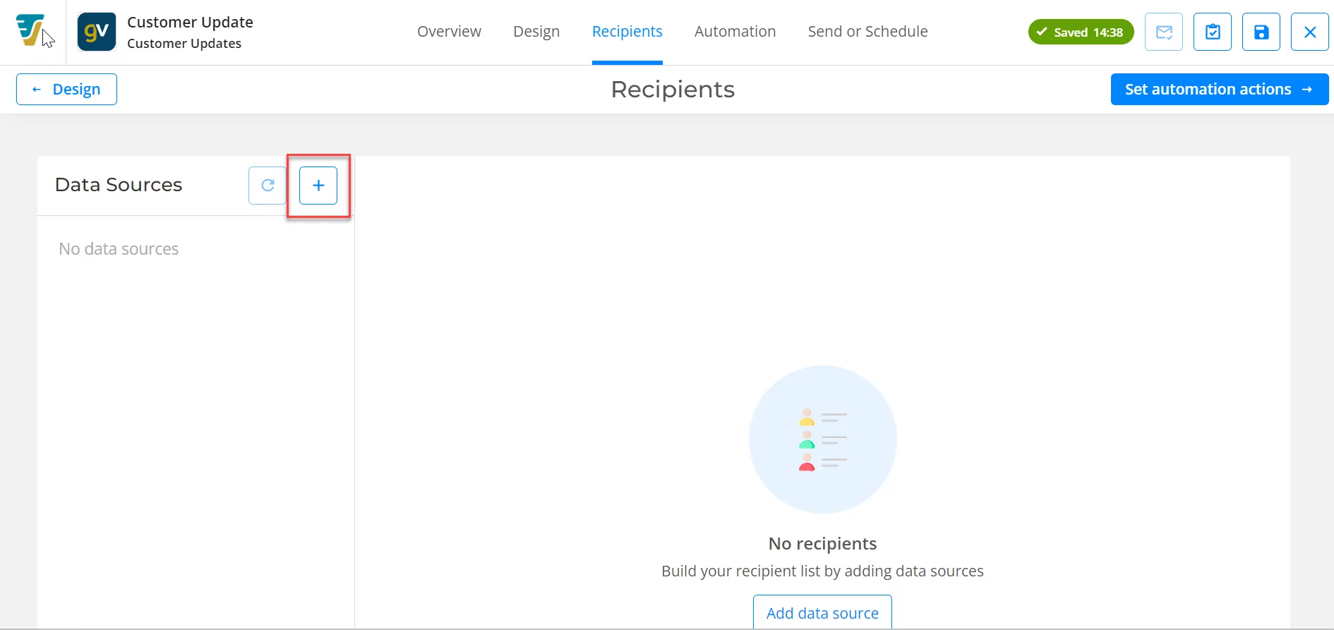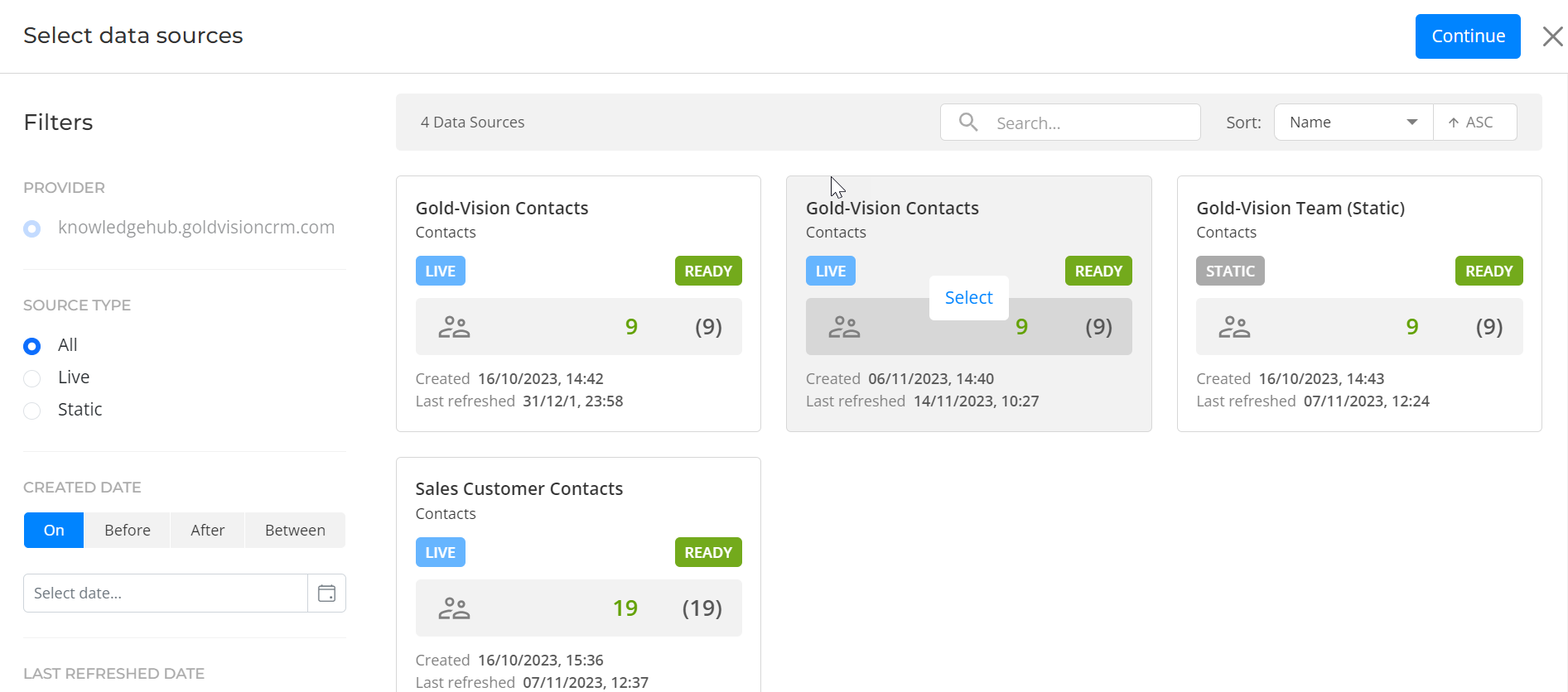 Select from the Source that you want to include for this Email click the continue Button.
